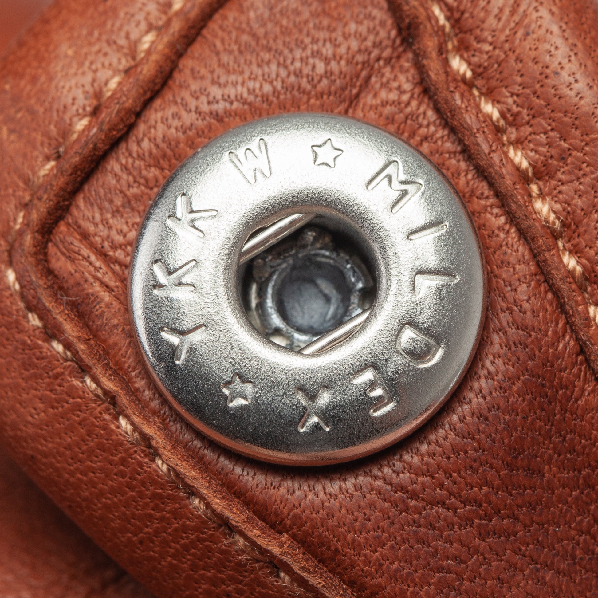 These gloves have a knuckle protector using Poron® XRD® Extreme Impact Protection hidden beneath the leather and have pre-curved finger construction. They also have hand-sewn knuckle holes and a wrist strap with a silver buckle.