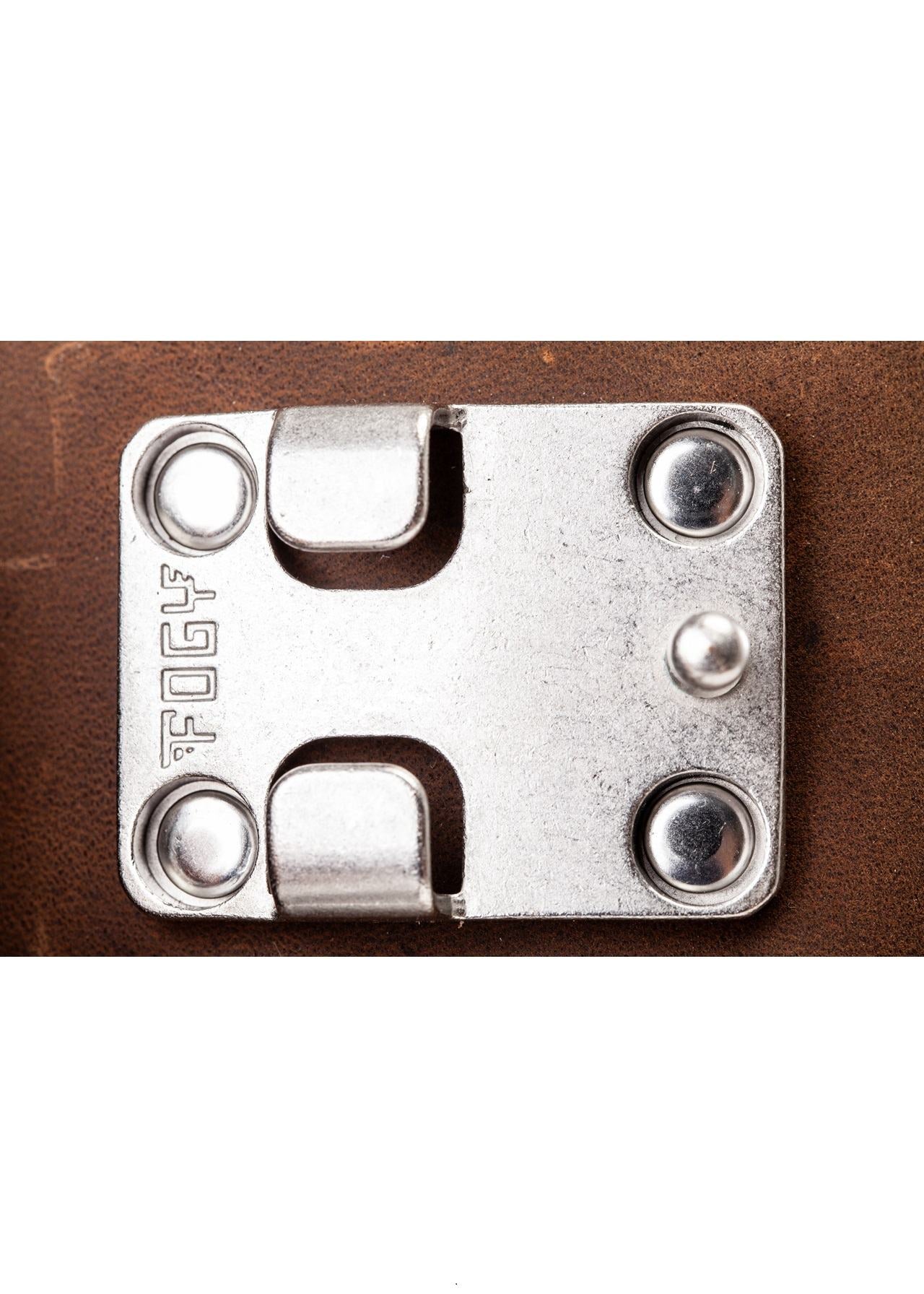 - Custom stamped steel side buckle, perfectly contoured