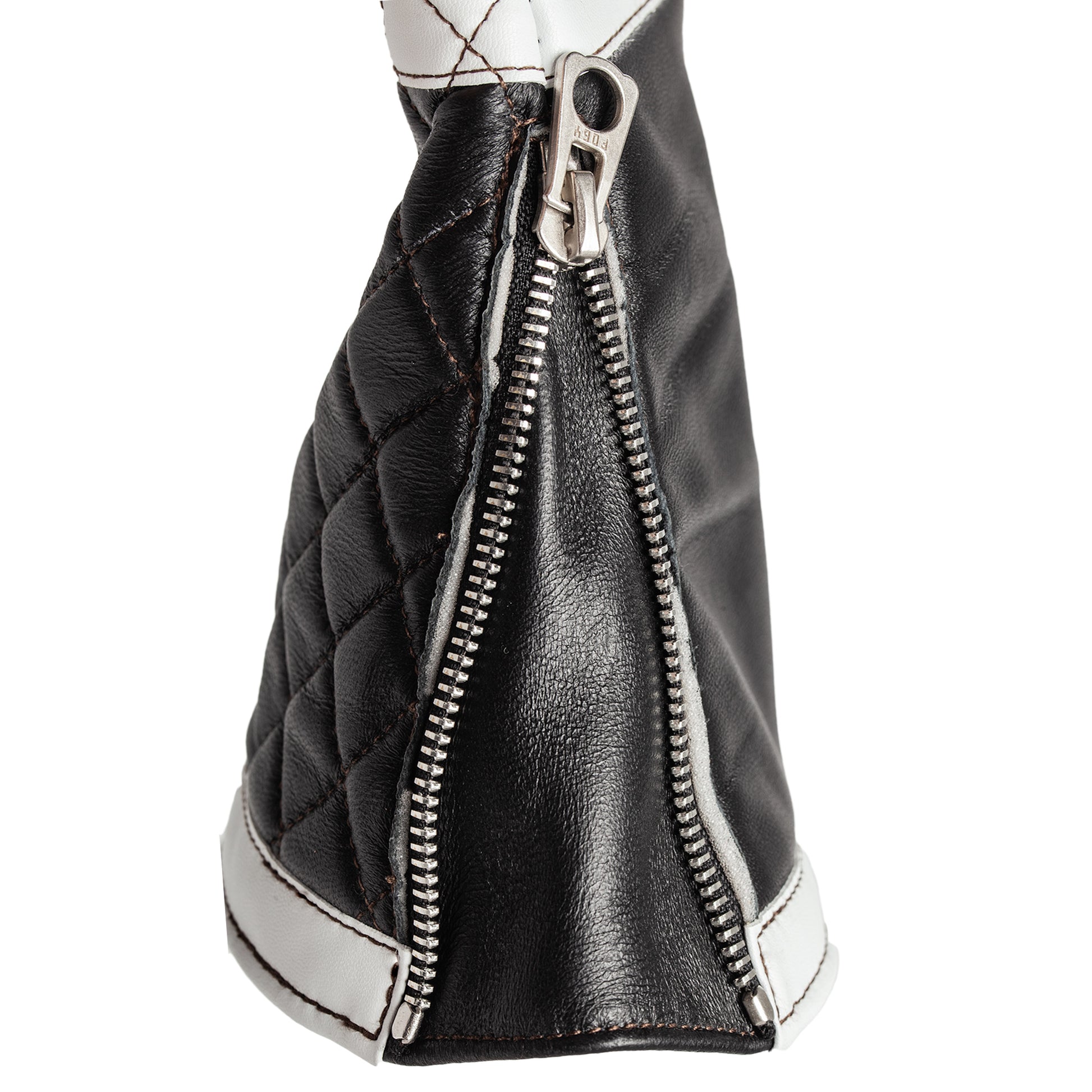 These gloves in classic black and white come from our prisoner series. The use of hand-woven grids, interspersed methods and a large amount of sewing thread is very time-consuming.