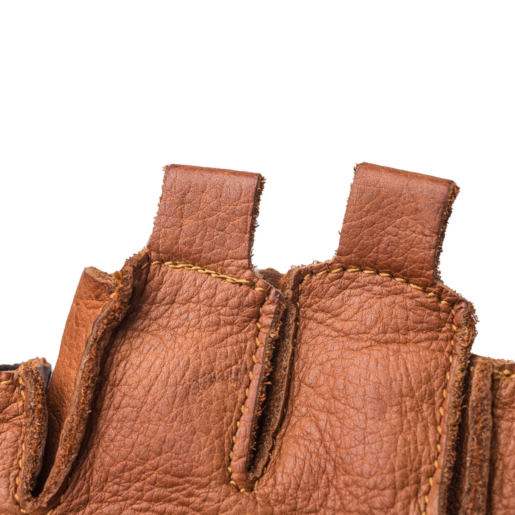This half-finger design is perfect for summer or tropical areas and is perforated for breathability in hot weather. The full-grain leather reverse side overlays the palm for improved grip.