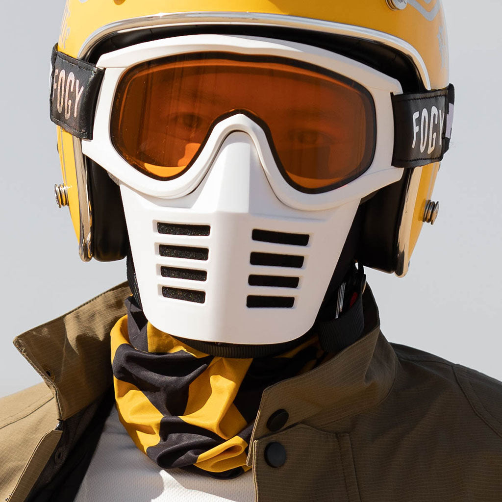 The idea comes from 1970s VMX motocross gear.This visor is design for 3/4 helmets, giving your head full protection while riding.